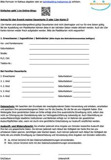 Wenn Sie den Online-Service nicht nutzen möchten, füllen Sie bitte das beiliegende Formular (auch auf https://vg-maikammer.de/kalmitbad-maikammer/ erhältlich) aus. Wir bereiten Ihre Karte dann für Sie vor. Die Karte kann bei Ihrem ersten Badebesuch an der Freibadkasse bezahlt werden (Barzahlung). Wartezeiten lassen sich je nach Andrang leider nicht vermeiden.