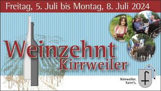 Von Freitag, 05. Juli, bis Montag, 08. Juli 2024, feiert der Weinort Kirrweiler sein Weinfest, den „Kirrweiler Weinzehnt“, mit viel Live-Musik, Pfälzer Stimmung, Gemütlichkeit, Essen und Weinen, da wird für jeden was geboten.