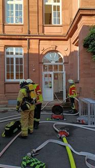 Am Montag Abend, den 24.06.2024, fand in St. Martin die gemeinsame Übung der Freiwilligen Feuerwehren (FFW) der Verbandsgemeinde Maikammer statt. Mit insgesamt 63 Kamerad*innen beteiligten sich alle Einheiten der Feuerwehren Kirrweiler, Maikammer und St. Martin und trainierten ein Übungsszenario, wie es sich in der Realität abspielen könnte. Zu Beginn der Übung wurden die Kräfte zu einer ausgelösten Brandmeldeanlage (BMA) in der Grundschule St. Martin alarmiert. Vor Ort stellten die Einsatzkräfte einen Kellerbrand fest und fanden im Obergeschoss des Gebäudes eingeschlossene Kinder vor, die von Mitgliedern der Jugendfeuerwehr St. Martin gemimt wurden. Über das entrauchte Treppenhaus des Gebäudes wurden sie evakuiert während weitere Kräfte zeitgleich den fingierten Brand im Keller bekämpften. Zusätzlich wurde ein Unfall eines Atemschutzgeräteträgers simuliert, der durch die eigenen Kameraden und den für solche Situationen bereitstehenden Sicherheitstrupp umgehend gerettet werden musste. Neben insgesamt acht Fahrzeugen der VG war außerdem die FFW Edenkoben mit der Drehleiter und einem weiteren Fahrzeug vor Ort und die Feuerwehreinsatzzentrale Edenkoben war während der gesamten Übung besetzt.