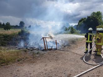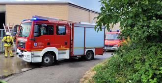 Am Einsatzort bestätigte sich die Meldung - es brannte im Außenbereich einer Lagerhalle auf einer Fläche von etwa vier mal sechs Metern.