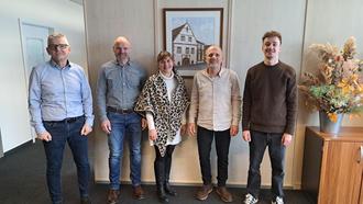 (v.l.n.r. Büroleiter Andreas Reuter, Fachbereichsleiter Bauen Jürgen Falkenstein, Bürgermeisterin Gabriele Flach, stellv. Fachbereichsleiter Kai Rothenbücher, stellv. Personalratsvorsitzender Julian Schultz).