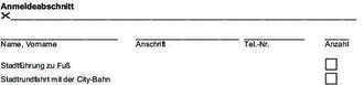 Bitte kreuzen Sie auf dem Anmeldeformular an ob Sie die Stadtführung zu Fuß oder mit der Bahn in Anspruch nehmen wollen, da die Plätze jeweils begrenzt sind.