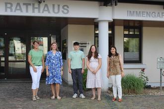 v.l.n.r. stellv. Fachbereichsleiterin Alexandra Hünerfauth, Jolin Volkhardt, Luca Kiefer, Personalratsvorsitzende Sophia Fritz, Bürgermeisterin Gabriele Flach