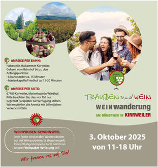 Der Weinbauverein Kirrweiler lädt Sie herzlich zur Weinwanderung am 3. Oktober ein.