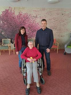 Verbandsbürgermeisterin und Ortsbürgermeister freuten sich, der Jubilarin zu ihrem besonderen Tag gratulieren zu dürfen und dankten insbesondere allen Mitarbeitern und Mitarbeiterinnen des Hauses St. Pirmin für die gute Pflege und Betreuung.
