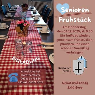 Schon heute vormerken: Das nächste Seniorenfrühstück findet am Donnerstag, den 26.02.2026, statt.