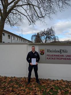 Am vergangenen Freitag, den 06.12.2024, hat unser Kamerad Tobias Schmidt aus der Freiwilligen Feuerwehr St. Martin erfolgreich die Ausbildung zum Zugführer absolviert. Über den Landkreis Südliche Weinstraße, in dem er bereits Stellvertretender Zugführer des Katastrophenschutzzuges ist, absolvierte er die zweiwöchige Ausbildung an der Landes Feuerwehr- und Katastrophenschutzakademie in Koblenz. In diesem Rahmen konnte er sich Wissen zum effizienten und taktischen Führen einer Einsatzeinheit aneignen, das er als Zugführer in Einsätzen braucht. Denn als solcher ist er nun ausgebildet zum Führen eines Zuges, also einer Einheit von bis zu 22 Kameradinnen und Kameraden.
