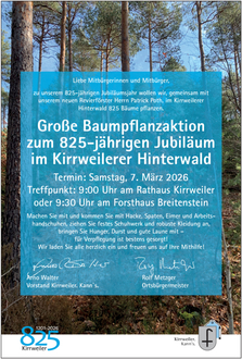 Große Baumpflanzaktion zum 825-jährigen Jubiläum im Kirrweilerer Hinterwald