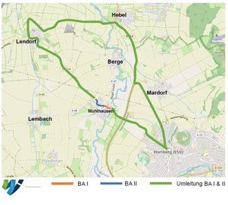 Die Umleitung erfolgt über Homberg (Efze) - Hebel - Lendorf, bzw. umgekehrt.