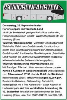 nach Homberg (Efze). Inklusivleistungen:39,00 € p.P,