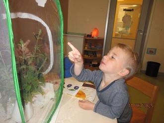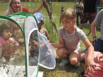 Ein weiterer Höhepunkt des Themas zog in Gestalt von etwa 25 kleinen Raupen des Tagpfauenauges in einem geeigneten Netz Anfang Juni ein. Mit großen Augen bestaunten die Kinder die schwarzen Tierchen, welche sich so ganz anders als die Raupe Nimmersatt von täglich frisch gepflückten Brennnesseln ernährten, größer wurden, sich schließlich nach gut 2,5 Wochen verpuppten und in grünbräunlichen Kokons von der Netzdecke und den Ästen hingen. Nach weiteren etwa 1,5 Wochen Warten, geschah das kleine Wunder: Die ersten Schmetterlinge schlüpften aus ihren Kokons und wir konnten beobachten, wie sie ihre Flügel putzten und zum Flug ansetzten. Natürlich ließen wir die wunderschönen Schmetterlinge noch am selben Tag in die Freiheit fliegen. Ein wunderbares Ereignis, welches den Kindern noch lange in Erinnerung bleiben wird.