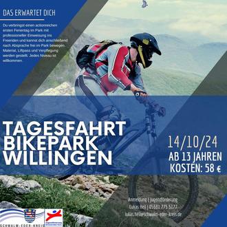 Einen Ferientag voller Action bietet die Jugendförderung Schwalm-Eder am 14. Oktober. Auf dem Programm steht eine Fahrt in den Bikepark Willingen für Jugendliche ab 13 Jahren. Die Teilnehmenden bekommen eine professionelle Einweisung in das sichere Freeriden. Der Bikepark bietet Strecken für jedes Niveau. Nach Abschluss des Kurses kann der Park nach Absprache individuell erkundet werden. Sicheres Radfahren ist Grundvoraussetzung für eine Teilnahme.