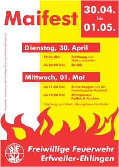 Wir laden Sie herzlich zu unserem Maifest am Dienstag, 30.04. und Mittwoch, 01.05., im und um das Feuerwehrgerätehaus ein.