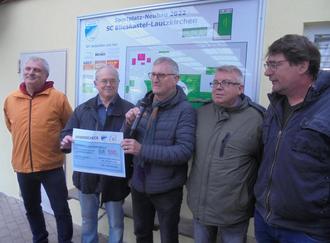 Klaus Port - Bei der 500 Euro-Spendenübergabe bedankten sich (von links) Peter Geble und Klaus Port bei Günther Pusse, Alexander Weisbrodt und Frank Oberinger (alle SCB) für die großartige Geste und tolle Spende.