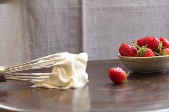 Nach Belieben mit einem Bäcker-Kamm oder einer Gabel Wellen in die Creme zeichnen. Etwa 1 Std. kühlstellen. Kurz vor dem Servieren üppig mit Kakaopulver bestäuben und beliebig mit Erdbeeren garnieren.