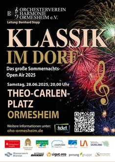 Am nächsten Samstag, 28. Juni findet in Ormesheim auf dem Theo-Carlen-Platz wieder ein Sommernachts-Open Air des Orchestervereins „Harmonie“ Ormesheim statt.