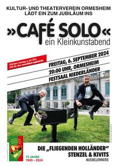 Auf Einladung des Kultur- und Theatervereins gastieren die beiden grandiosen Slapstick-Künstler Stenzel & Kivits aus den Niederlanden am 6. September, um 20.00 Uhr, in der Festhalle aus Anlass des 75-jährigen Vereinsjubiläums. Es wird ein Abend für undogmatische Musikliebhaber, denn Stenzel & Kivits haben ihr „Best of-Programm“ aus über 20 Jahren im Gepäck. Aus den Highlights aller bisher gespielten Programme haben die beiden preisgekrönten Musikclowns ein neues Bühnenprogramm geschaffen: Während Tenor Stenzel unbeirrt seine Arien schmettert und Pianist Kivits mit der zerzausten Nicht-Frisur virtuos in die Tasten haut, erlebt das Publikum einen Angriff auf die Lachmuskeln. Und am Ende bekommt ein Flügel tatsächlich Flügel verliehen ...