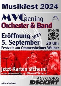 Unter dem Motto MVOpening startet der Musikverein Ommersheim am Donnerstag, 5. September mit einem musikalischen Höhepunkt in das Musikfest 2024. Das Große Orchester präsentiert die bekanntesten Hits von Weltstars wie etwa Tina Turner, Amy Winehouse, Robbie Williams, den Scorpions, Lady Gaga und vielen mehr.