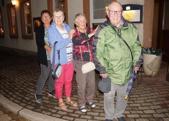 Vier Ormesheimer auf dem Heimweg nach dem Heimatabend: (v-re) Osmund Borner (94), Änne Speicher (102), Agathe Dier und Irmgard Bachmann-Cernko