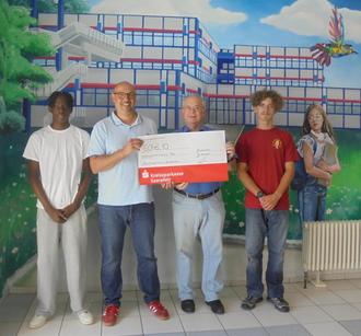 Bei der offiziellen Spendenübergabe, bei der Luis Rohrbach (Klasse 9a) und Giovanni Babalola (Klasse 8b) stellvertretend für die Geschwister-Scholl-Schule Blieskastel zugegen waren, überreichte Schulleiter Sacha Matheis den bemerkenswerten 6.048,10 Euro-Spendenscheck an Klaus Port vom Vorstand des Schutzengelvereins.