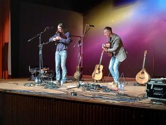 Auch dem Mandelbachtaler Publikum gefiel die mitreißende Musik: "Ach, die singen soooo schön" konnte man aus dem Publikum hören und immer wieder brandete Zwischenjubel bei den Liedern auf. Mark Bloomers rauchige Stimme vermischte sich perfekt mit dem reinen, treibenden Gesang von Andrew Cadie. In einem Moment becircten die beiden das Publikum mit dem konzentrierten Zauber eines traditionellen Liebesliedes, im nächsten starteten sie in eine Gospel-durchzogene Coverversion, untermalt von perkussiver Geige und einer Gitarre als Trommel!