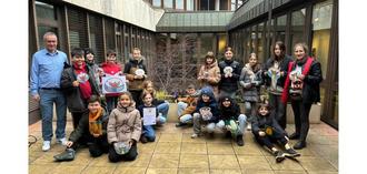Bei ihrem Besuch im Landratsamt nutzten die Schülerinnen und Schüler die Gelegenheit, Landrat Frank John persönlich ein Säckchen mit Tulpenzwiebeln zu überreichen und über ihre Vorgehensweise beim Projekt zu berichten. Der Verwaltungschef zeigte sich beeindruckt vom Engagement der jungen Menschen bei der Umsetzung dieser prinzipiell schlichten Idee, die jedoch große Wirkung zeigt. „Ihr beweist eindrucksvoll, dass Bildung nicht nur im Klassenzimmer stattfindet und ihr setzt ein sichtbares Zeichen der Solidarität, das den Moment des Pflanzens oder des Verkaufs der Tulpen überdauert. Ihr tragt dazu bei, das Leben anderer zu verbessern, und das finde ich vorbildlich“, lobte der Landrat und dankte allen, die das Vorhaben immer wieder aufs Neue ermöglichen und begleiten. Neben der Spende gab es als Dankeschön für die Schülerinnen und Schüler noch Schokoriegel aus dem Fairen Handel, die natürlich von ihnen strahlend angenommen wurde.