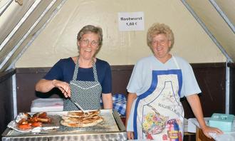 Ormesheimerinnen: (v-li) Hedwig Hussong ("Joschde Hedwich") und Hannelore Jost (Preis der Rostwurst: 1,60 EUR)