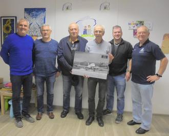Der 1. Vorsitzende Lutwin Foss (3.von rechts) und Schatzmeister Olaf Wunn (3.von links) vom gemeinnützigen Verein "Flughafenfreunde Saarbrücken e.V." überreichten eine bemerkenswerte 300 Euro-Spende und ein schönes Flugzeug-Foto an unsere Vorstandsmitglieder Klaus und Michael Port (2.von rechts) sowie Hubert Schewes (2.von rechts) und Peter Geble (rechts).