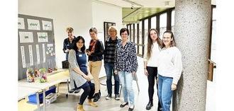 Am „Tag der seelischen Gesundheit“ unter Beteiligung des Sozialpsychiatrischen Dienstes in der Kreisverwaltung (v. l.): Nina Schaubitzer, Petra Schulte, Rita Best, Matthias Müller (alle Sozialpsychiatrischer Dienst), Dr. Ulrike Zawar Geschäftsbereichsleiterin Arbeit, Soziales und Gesundheit), Anna-Lena Buchheit und Katharina Schett (beide Betriebliches Gesundheitsmanagement).