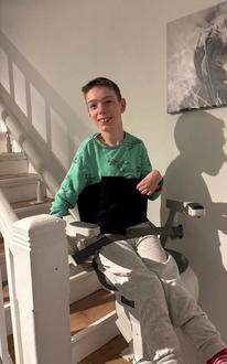 Nach Abzug des obligatorischen Zuschusses der Krankenkasse klaffte für das so wichtige Projekt noch eine Finanzierungslücke von 5.482 €, die die Familie nicht selbst "stemmen" konnte. Durch komplette Übernahme des noch offenen Betrages durch den Blieskasteler Schutzengelverein konnte der Herzenswunsch erfüllt und der Treppenlift durch die St. Ingberter ATC Lift GmbH zügig installiert werden. Inzwischen kann Paul, der den Lift gut angenommen hat, die Treppe eigenständig hoch- bzw. herunterfahren. Am 02.11.2025 erfolgte die offizielle Spendenübergabe bei der Familie in Wadern.