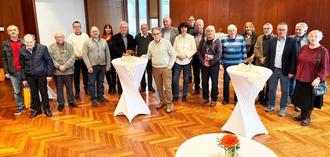 Das Saarpfalz-Jahrbuch stellten Martin Baus, M.A. (2. v. r.), und Dr. Susanne Nimmesgern (5. v. r.) im Beisein von Landrat Frank John (3. v. r.) sowie zahlreicher Autorinnen und Autoren vor.