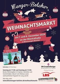 Auch in diesem Jahr freut sich der Dorfverein Bliesmengen-Bolchen e. V. darauf, den Menger-Bolcher Weihnachtsmarkt veranstalten zu dürfen. Dieser findet wie gewohnt am zweiten Adventswochenende, also am 7. und 8. Dezember 2024, auf dem Hof an der Bliestalhalle und Kita statt.