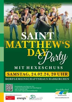 Rechtzeitig zum Saint-Matthew's Day am 24. Februar kommt die Band „Hexeschuss“ auf Einladung des Verkehrsvereins Mandelbachtal ins Dorfgemeinschaftshaus nach Habkirchen um gemeinsam mit ihren Fans ein tolles Geburtstagskonzert, aus Anlass von 50 Jahre Gemeinde Mandelbachtal, zu feiern. Die fünf Hexer werden an dem Abend einen musikalischen Bogen von traditionellen irischen Fiddletunes schlagen bis zu Folkstandards mit Mitsingcharakter, von bekannten Interpreten wie Dubliners, Pogues und Battlefield Band, Paddy Goes To Hollyhead und High Kings bis zu Adaptationen von Hooters bis Jethro Tull.