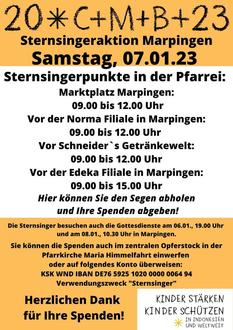 Ab dann gibt es auch die Segensaufkleber im Friseursalon Edmund Brill, in der Bäckerei Recktenwald und bei Tankstelle Schlick, Ihre Spenden können Sie in die verplombte Spendendose geben.
