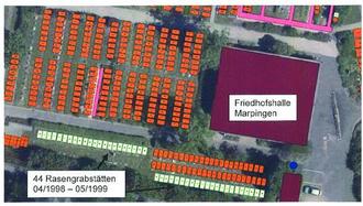 Gemäß § 8 Abs. (1) der Satzung für die Friedhöfe der Gemeinde Marpingen vom 06.01.2007 in der zurzeit geltenden Fassung beträgt die Ruhezeit für Grabstätten für Erwachsene mindestens 25 Jahre. Der Ortsrat hat in seiner Sitzung am 09.02.2023 und der Gemeinderat am 15.03.2023 der Einebnung von 44 Rasengrabstätten aus dem Belegungszeitraum von April 1998 bis Mitte Mai 1999 zugestimmt.