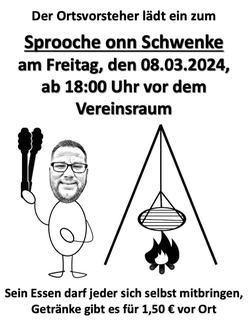 Herzliche Einladung zum heutigen „Sprooche onn Schwenke“. Los geht es ab 18 Uhr vor dem Vereinsraum. Das Feuer zum Schwenken und Aufwärmen wird brennen. Ich freue mich bereits, mit vielen von Euch in die neue Saison starten zu können.