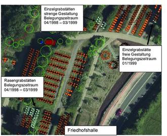 Für 17 Rasengrabstätten aus dem Belegungszeitraum von April 1998 bis März 1999, 6 + 1 Einzelgrabstätten aus dem Belegungszeitraum von April 1998 bis März 1999 ist die Einebnung ab Juni 2024 vorgesehen.