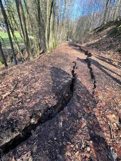Die Gemeindeverwaltung hatte sich schnell ein Bild vor Ort gemacht. Um zu prüfen, wie groß der Schaden ist, wurde ein Geolabor beauftragt. Wenn die Ergebnisse vorliegen, wird geprüft werden, welchen Maßnahmen durchgeführt werden können und welche Kosten diese verursachen würden.