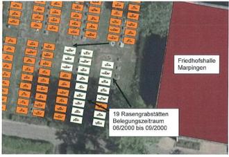 Gemäß § 8 Abs. (1) der Satzung für die Friedhöfe der Gemeinde Marpingen vom 06.01.2007 in der zurzeit geltenden Fassung beträgt die Ruhezeit für Grabstätten für Erwachsene mindestens 25 Jahre. Der Ortsrat hat in seiner Sitzung am 06.02.2025 und der Gemeinderat am 19.03.2025 der Einebnung von Rasengrabstätten nach Ablauf der Mindestruhezeit zugestimmt. Somit werden 20 Rasengrabstätten aus dem Belegungszeitraum von Oktober 2000 bis April 2001 ab dem 4. Mai 2026 eingeebnet.
