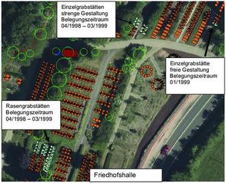 Für 17 Rasengrabstätten aus dem Belegungszeitraum von April 1998 bis März 1999, 6 + 1 Einzelgrabstätten aus dem Belegungszeitraum von April 1998 bis März 1999 ist die Einebnung ab Juni 2024 vorgesehen.