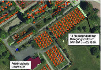Für 14 Rasengrabstätten aus dem Belegungszeitraum von Juli 1997 bis März 1998 ist die Einebnung ab Mai 2023 vorgesehen.