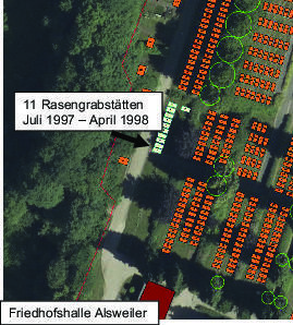 Für 11 Rasengrabstätten aus dem Belegungszeitraum von Juli 1997 bis April 1998 ist die Einebnung ab Mai 2023 vorgesehen.