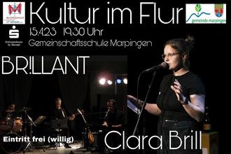 Clara Brill ist Musikwissenschaftlerin und studiert Kulturmanagement. In ihren Texten verarbeitet sie alles, was sie im Alltag erlebt und beobachtet. Vom Rutschentrauma im Schwimmbad bis zu den Putenfüßen, die der Hund ihrer Mitbewohnerin zum Frühstück frisst, kommen alle menschlichen Tiefen und Untiefen in ihren Texten vor. Ihre Stimme kennen die Hörer:innen von SR2 und SR3 mittlerweile aus dem Radio. Die Stimme ihres Vaters Jürgen Brill kennen die meisten auch aus dem Radio. Er wird mit seinem Trio BR!LLANT den Abend musikalisch begleiten. Er spielt mit Peter Morsch und Stefan Scharle eigene Songs, die alles beschreiben, was ihn umtreibt und beschäftigt, wie zum Beispiel der metaphorische Tod Humphrey Bogarts oder Dinge, die man eigentlich nicht erklären kann, aber doch erklärt.