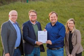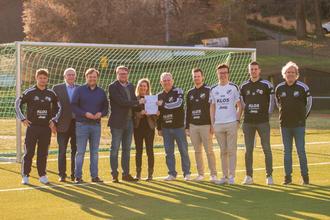 Staatssekretär Torsten Lang brachte Bürgermeister Volker Weber, beim gestrigen Ortstermin mit dem FC Hellas 1919 Marpingen e.V., die Bewilligungsbescheide in Höhe von rund 222.000 Euro mit.
