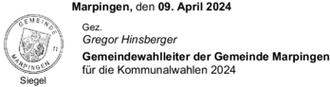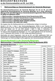 Rathaus: Wichtige Bekanntmachung zur Gemeinderatswahl 2024, halbseitig, Amtliche Bekanntmachungen