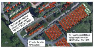 Für 20 Rasengrabstätten aus dem Belegungszeitraum von April 1998 bis März 1999 und für 15 Einzelgrabstätten mit strenger Gestaltung aus dem Belegungszeitraum von Oktober 1997 bis März 1999 ist die Einebnung ab Mai 2024 vorgesehen.