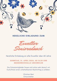 Herzliche Einladung zum Seniorennachmittag in Urexweiler am 21. April 2024!