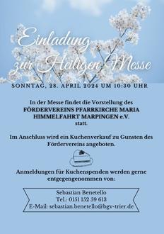 | MARP | 10:30 | Festamt m. feierlicher Eröffnung des Maimonats, Hilde u. Werner Biehler, Emil u. Hedwig Jochum u. Mirko Backes |