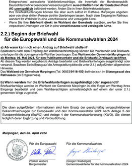 Wichtige Bekanntmachungen zu den Europa- und Kommunalwahlen 2024
