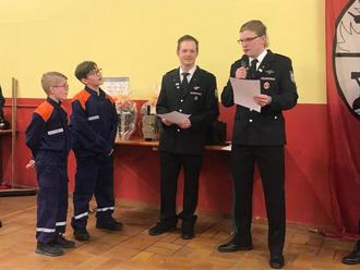 Im Anschluss an die Messe marschierten wir zum Feuerwehrgerätehaus, wo in einem Festakt Ehrungen und Beförderungen der Feuerwehrkameradinnen und Kameraden vorgenommen wurden.